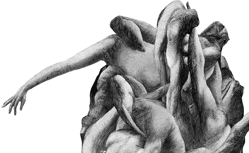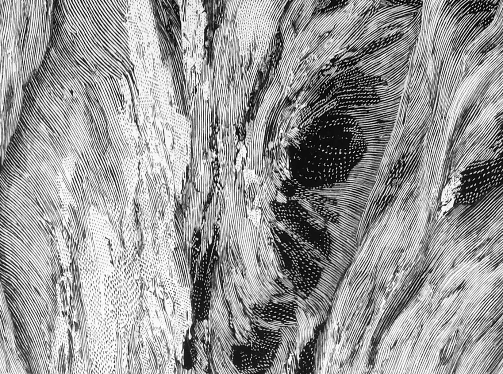 In some of the drawings the form and content fuse together, and the viewer cannot perceive the crux of the work at first glance. These are hidden images, or if we desire to follow the mode of aestheticism I mentioned earlier, we can say that we are dealing with mysterious art. Mystery, or secrecy, characterizes this artist's works as such. They portray dramatic events, or at least create a strong impression in the viewer that something is about to happen sooner or later. It is reminiscent of staring into a dark forest, which is a space that is hard to grasp, and in which any kind of danger may be lurking. In this respect, I cannot stop thinking about Lars von Trier's film Antichrist (2009 ), where the forest is something where unresolved things happen. While looking at the film, the viewer is constantly aware that something is going to happen, but what? Looking at Andersson's works, the experience is like that of watching a movie, but one where a whole series of images is packaged into a single image, which is, however, crammed to the rim with a narrative and densely populated by different images. In other words, the works have a substantial structure that feels like a narrative, but a plot that can only guessed at, because it is not at all clear, but rather ambiguous and allusive. Maybe this is something that the French philosopher Maurice Merleau-Ponty meant as he spoke of Cezanne 's early works as 'painted dreams'. ⁶ Works, that had their starting point in emotions, and were designed to evoke emotions.