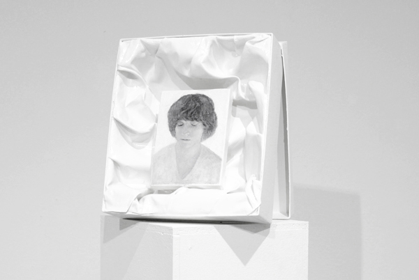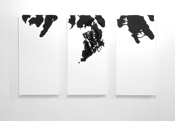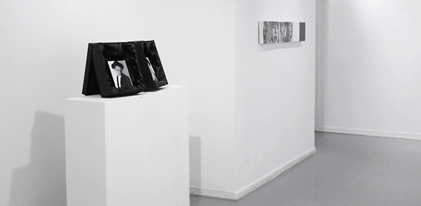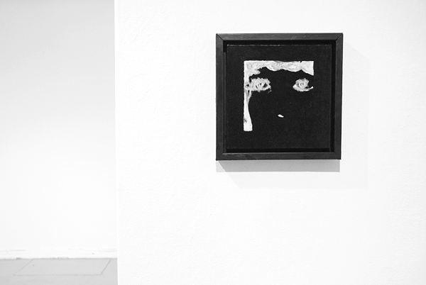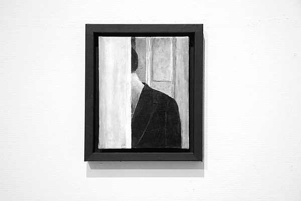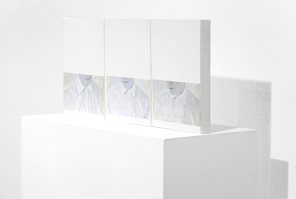 The small scale of many the artist's works catches my attention. They appear to be almost compressed, or some kind of voces intimae. Or are they more like altars towards which yo can turn to pursue meditation and other kinds of worship? This altar-like presentation is highlighted the exhibition by the way some of the paintings are placed in the middle of draped paper like jewels in jewelry boxes, or other rare and attractive objects. The surface of the paintings is treated with a high glossy sheen, and one is even covered with broken glass. Broken glass or gloss sheen may possibly be interpreted as a reference to the passage of time, or seen as a gesture towards creating something of an installation, by which the paintings are sent to the outside world for people to see.