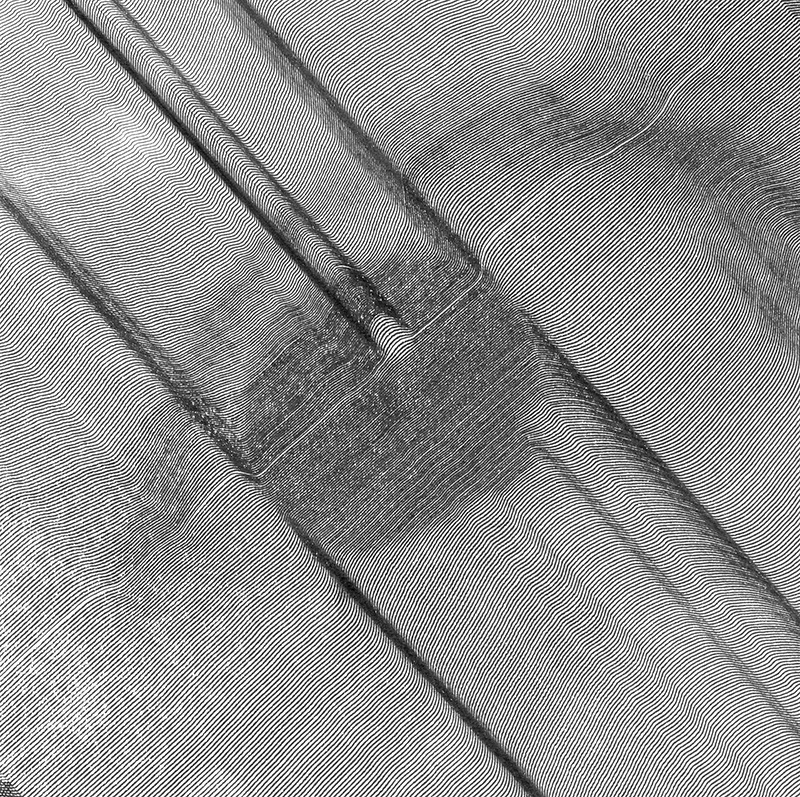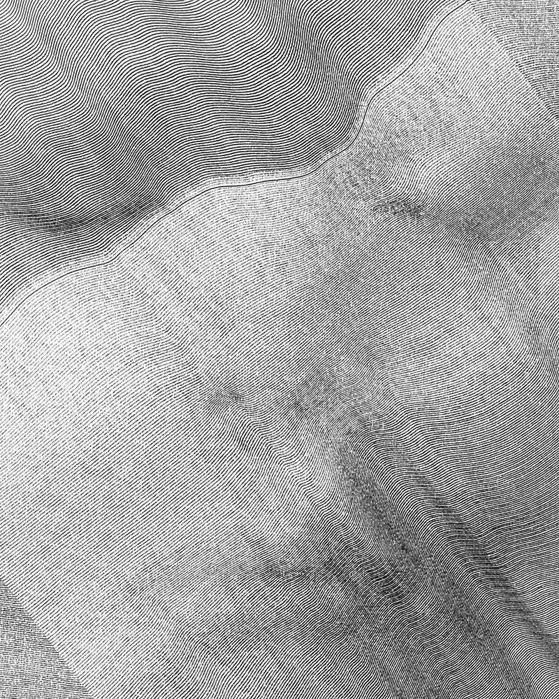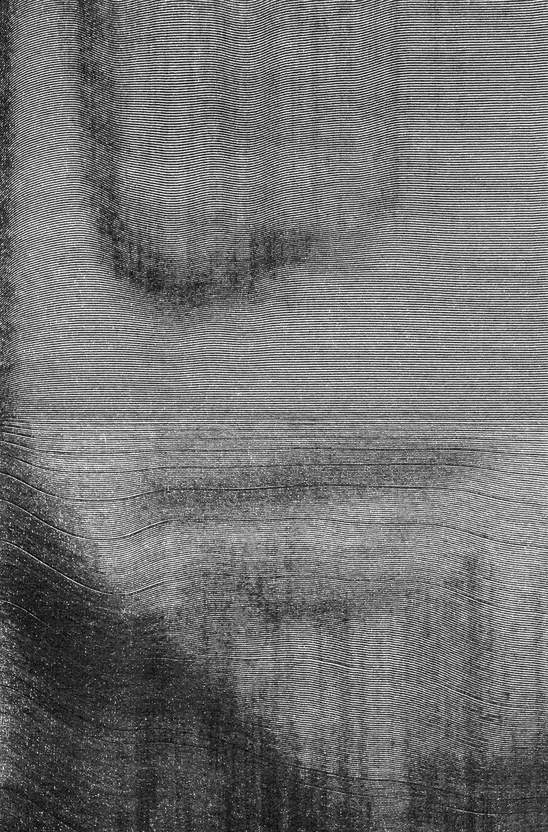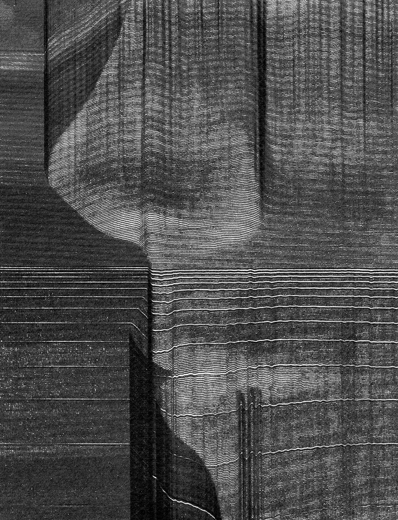 “From the outset it was clear to me that I wanted to include some kind of visual ‘bug’ or ‘flaw’. I also wanted to evoke a certain ‘xerox aesthetic’ that on closer inspection would reveal itself to be dense cross-hatching.”